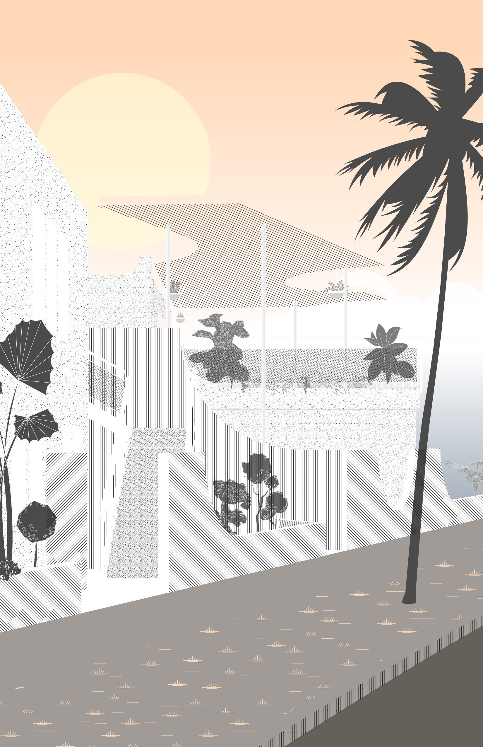 2019 - 2025 Bay Shore Apartments is a renovation of an existing three-family apartment building (c.1945) in Long Beach, California. The project involves an overhaul of the upstairs unit and upgrades to the building’s exterior, including a reconfigured exterior stair to the second level, a new shade structure and enlarged openings overlooking the view of the bay.